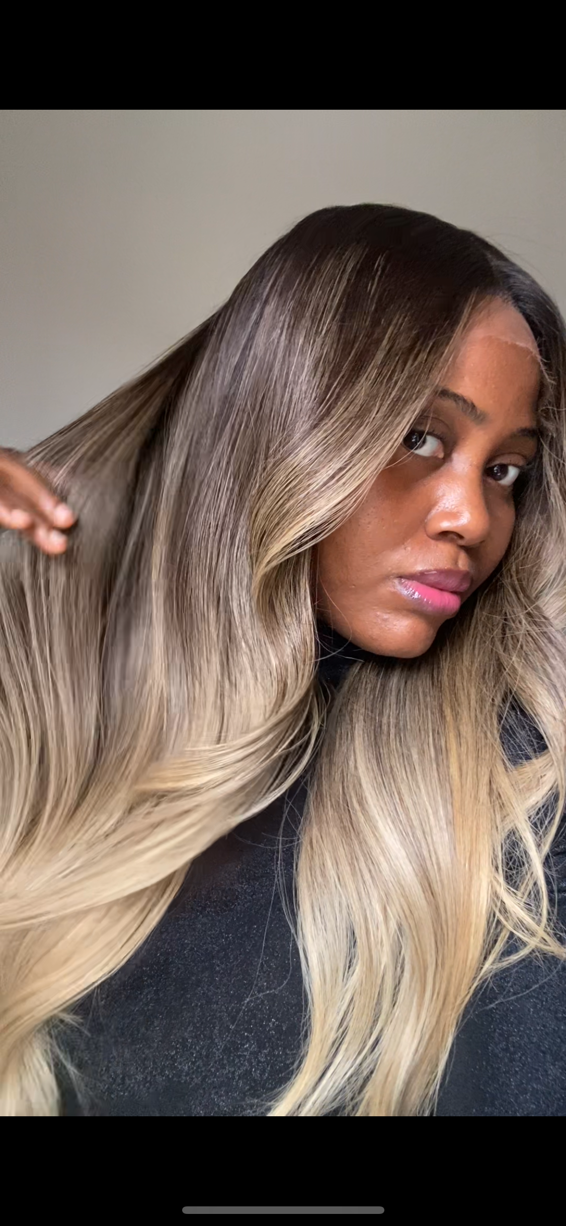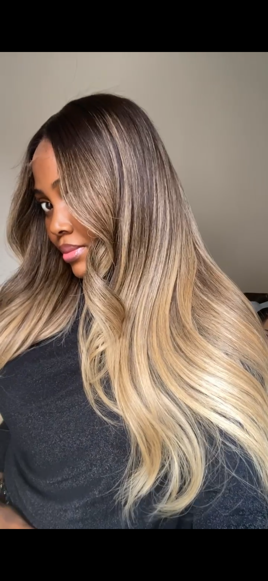 Jessie is 350g & 22′ inches in length, paired with 6X6 HD lace closure & custom colored ash BLONDE ends with dark roots. The cap construction is medium to fit most head sizes.